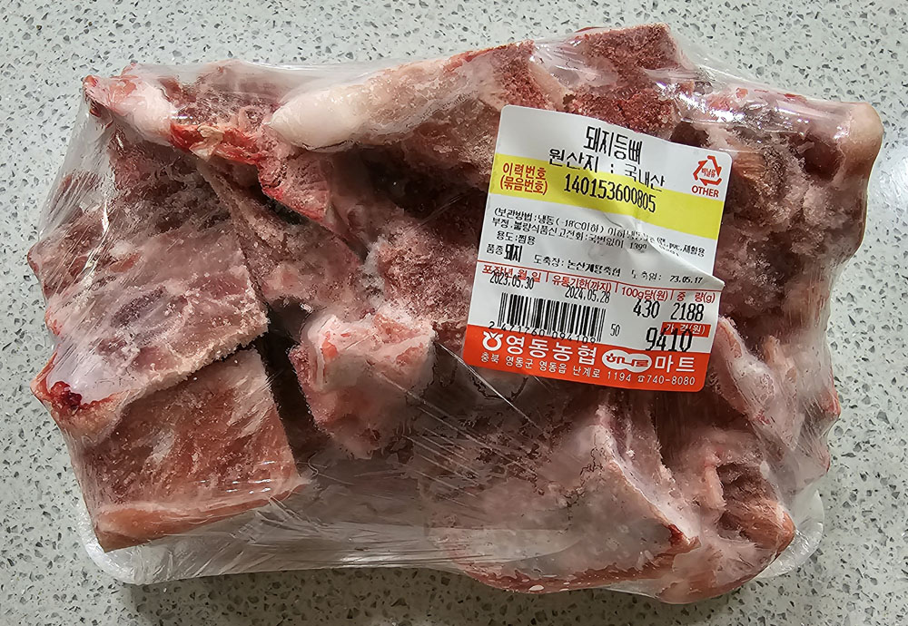 8. 돼지 등뼈 (국내산) 2188g : 9,410원