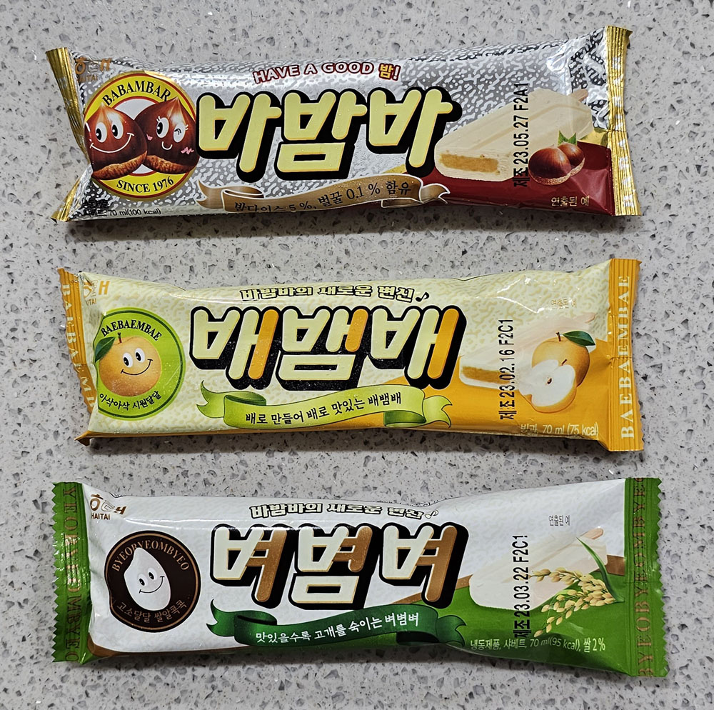 해태 바밤바 막대 아이스크림이 새롭게 변신한 배뱀배, 벼볌벼 아이스크림이 있어 함께 구매해서 먹어봤습니다.