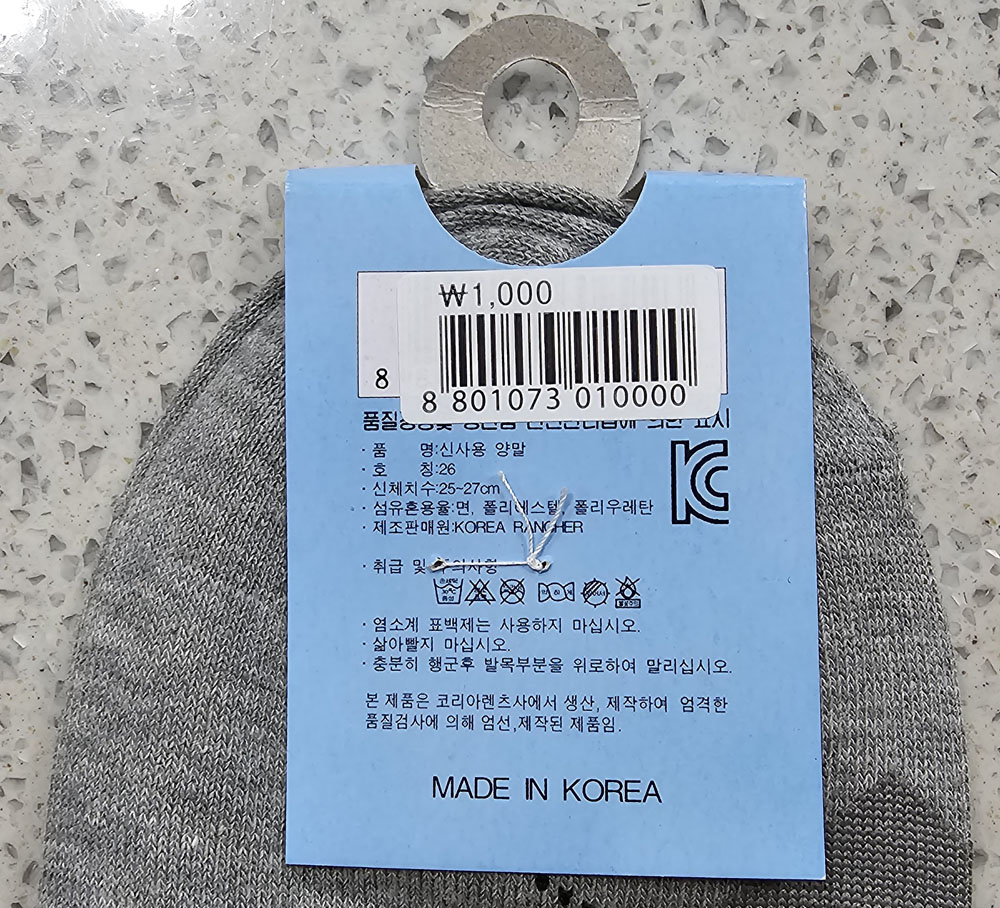코리아렌츠사 신사용 양말 호칭, 신체치수, 양말 섬유 혼용율 및 주의사항 外