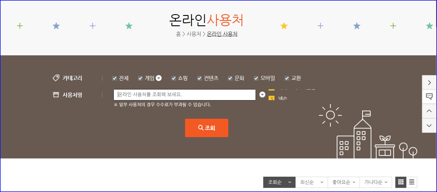 (카테고리 선택 후) 사용처명 조회를 하거나