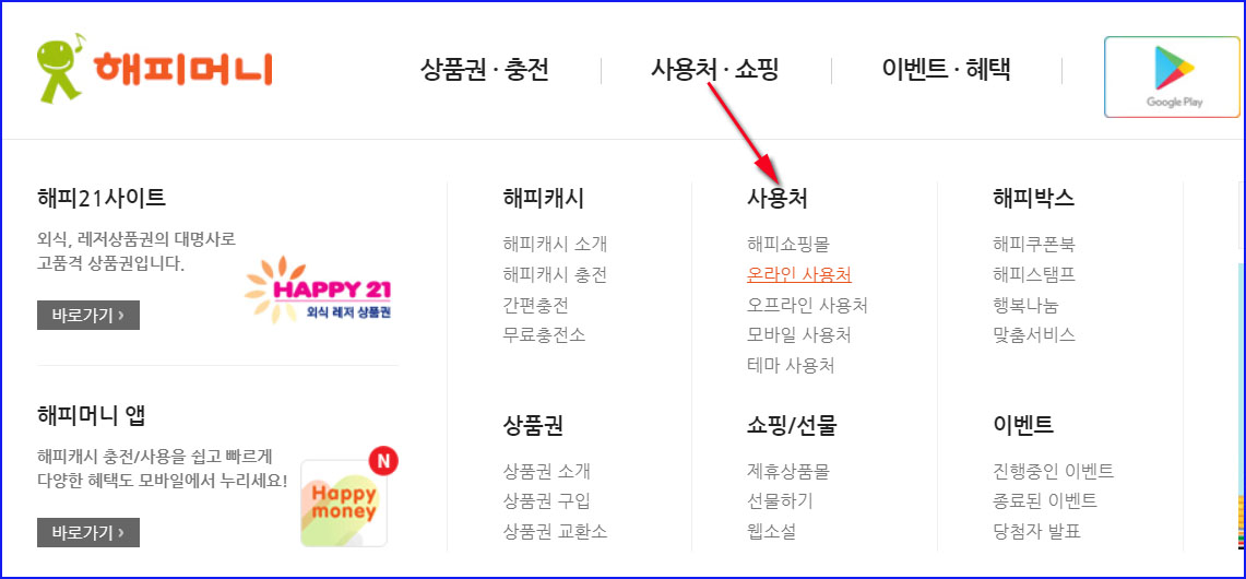 해피머니 상품권 사용처 (온라인, 오프라인, 모바일 등) 조회 방법
