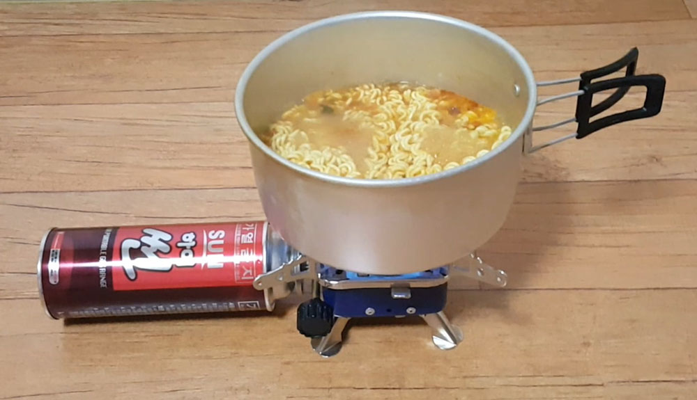 라면을 끓이거나 커피를 타먹기 위해 부탄가스가 필요했습니다.