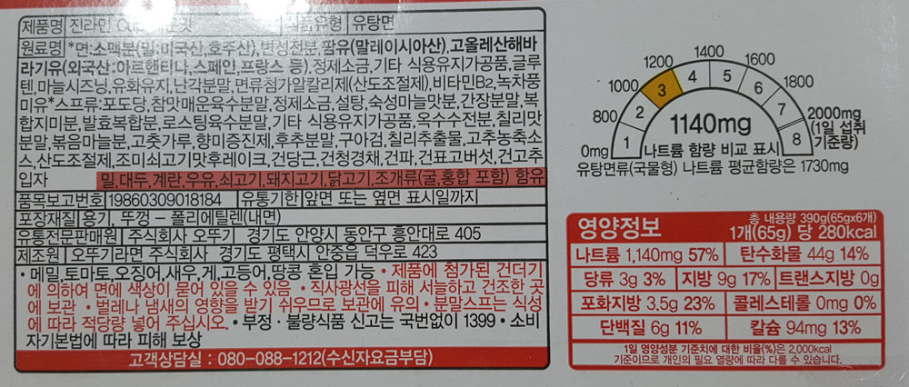 제조원 : 오뚜기라면 주식회사 / 경기도 평택시 안중읍 덕우로 423