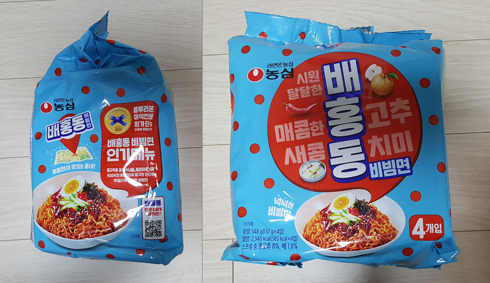 농심 배홍동 비빔면 멀티팩(4개) 가격, 중량, 원재료, 영양 정보, 비빔면 조리법, '배홍동 비빔면'의 뜻은?