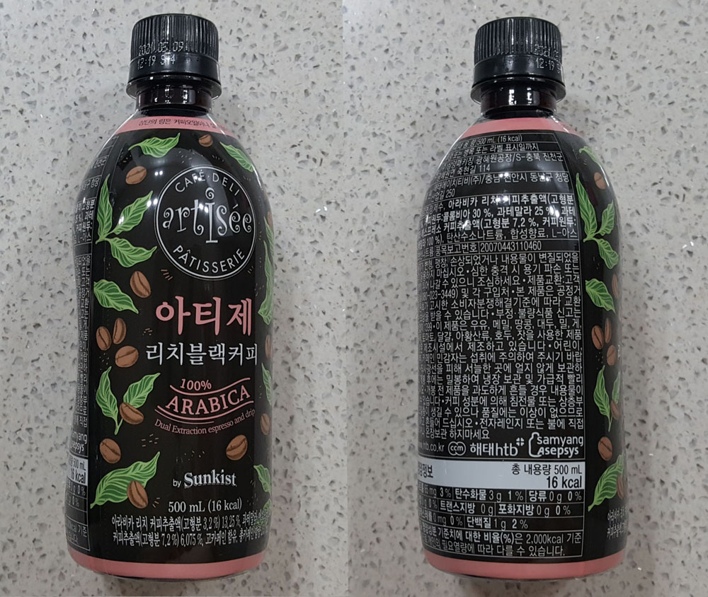 해태 아티제 리치블랙커피 내용량, 유통기한, 제조원, 원재료, 영양정보, 주의사항 外 상품 정보