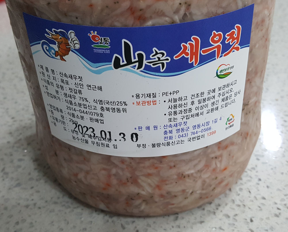 영동 산속새우젓 (山속 새우젓) 중량, 가격, 유통기간, 새우젓 원산지, 판매처 外