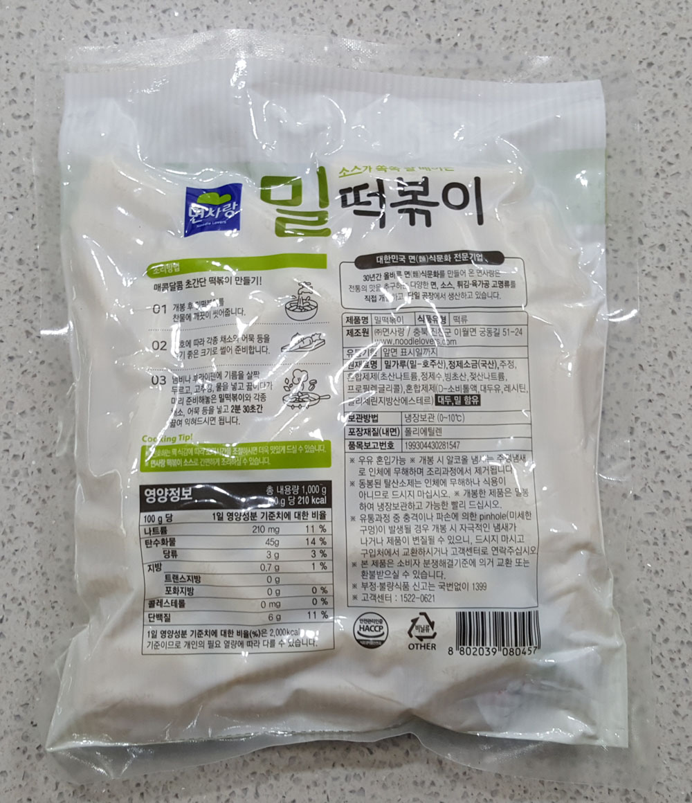 면사랑 밀떡볶이 가격, 내용량, 제조원, 면사랑 밀떡볶이 영양정보, 밀떡볶이 원재료, 유통기한 外