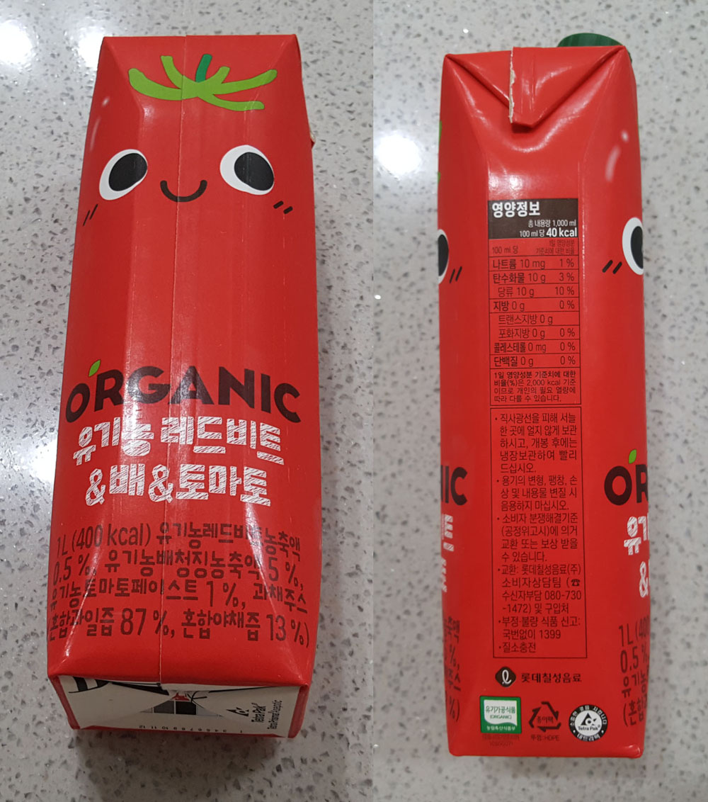 롯데칠성음료 ORGANIC 유기농 레드비트 & 배 & 토마토 유통기한, 원재료 및 영양정보