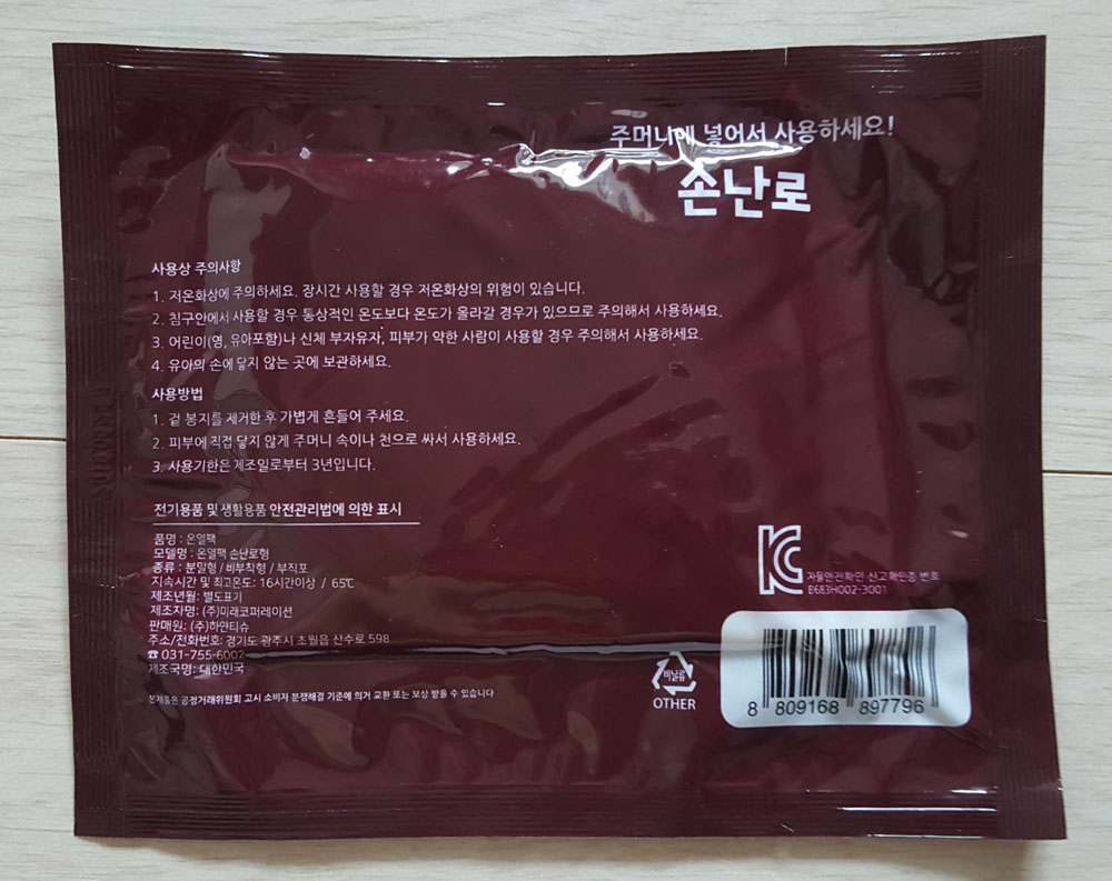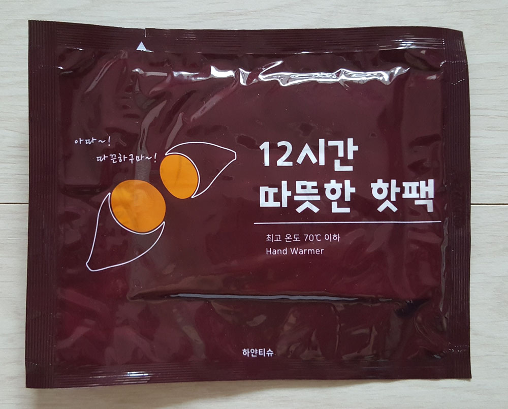 아래에 있는 내용은 (주)하얀티슈의 12시간 따뜻한 핫팩 (손난로형 온열팩) 포장지 내용을 발췌한 것입니다.