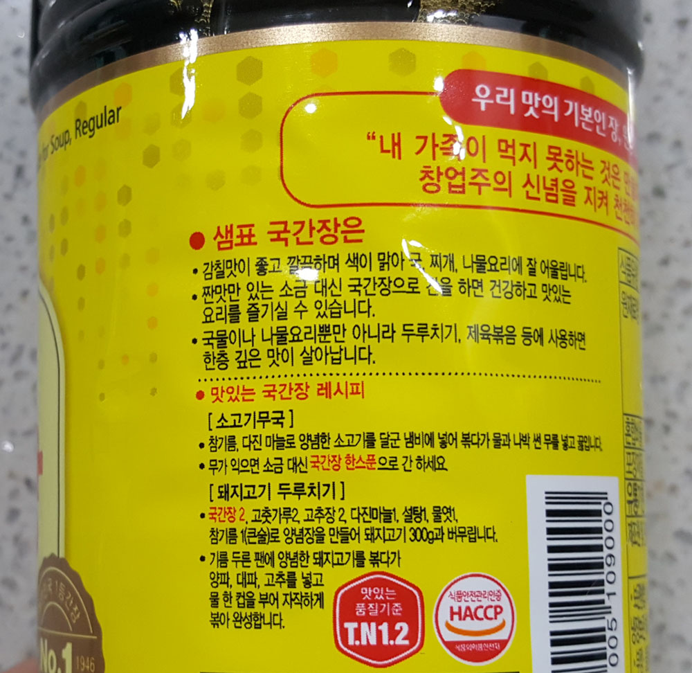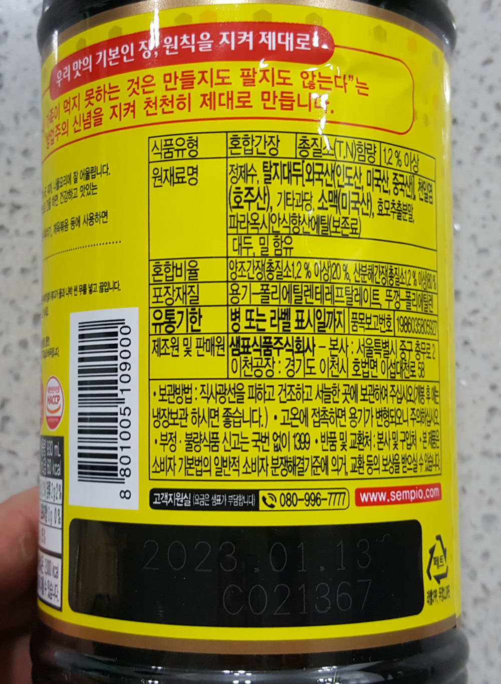 아래 내용은 샘표 국간장 라벨에 있는 내용을 그대로 옮겨온 것입니다.