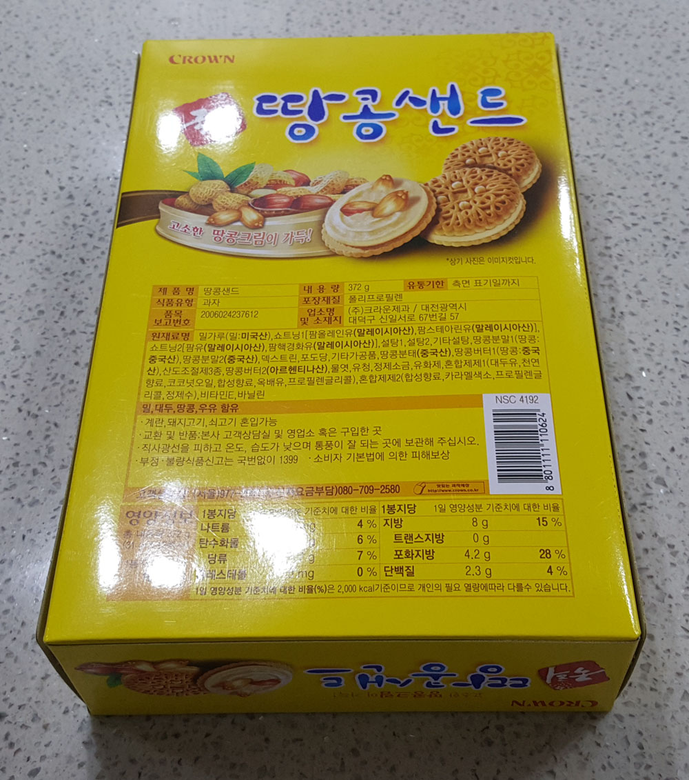 크라운 CROWN 국희 땅콩샌드 가격, 용량, 열량(kcal), 유통기한, 땅콩샌드 원재료 및 영양정보