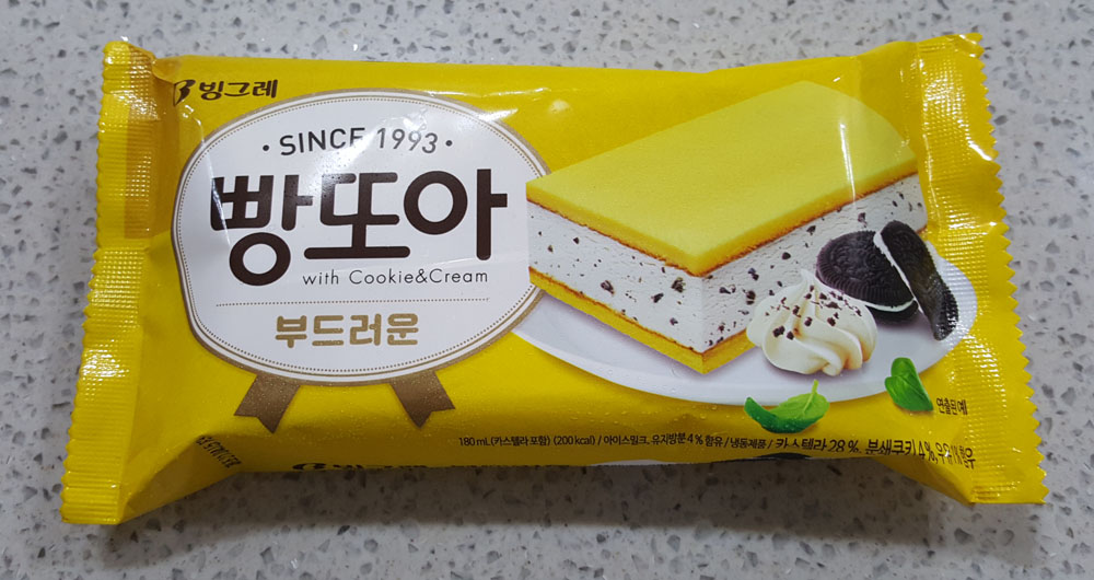 빙그레 부드러운 빵또아는 시원하고 달콤한 카스텔라를 맛볼 수 있는 빵류 아이스크림으로, 근처 마트에서 1,000원(할인가)에 구매했습니다.