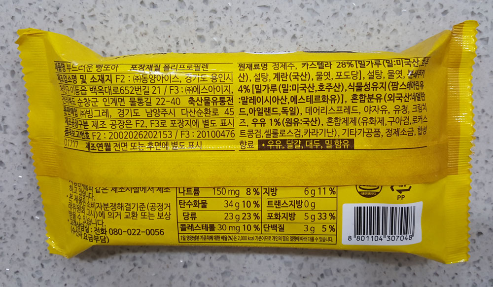 정제수, 카스텔라 28% [밀가루 (밀: 미국산, 호주산), 설탕, 계란 (국산), 물엿, 포도당]