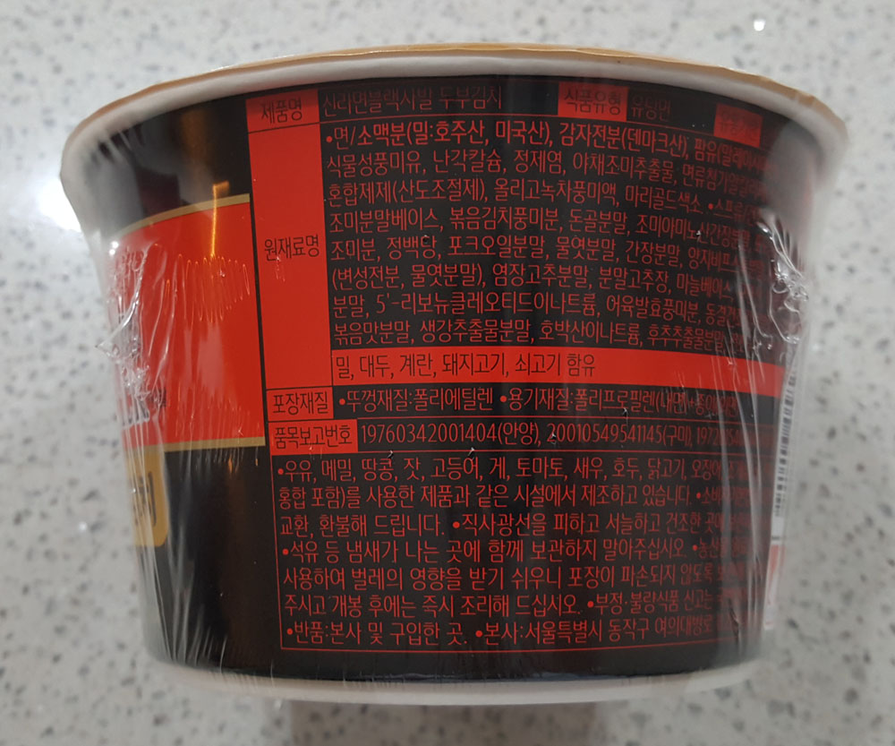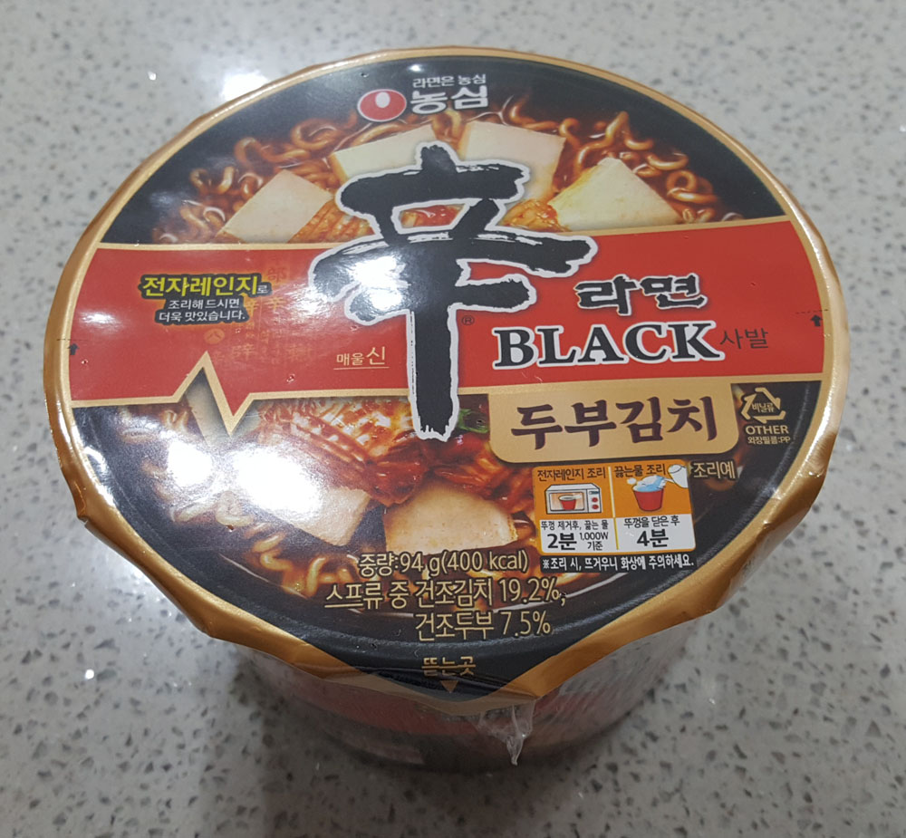 농심 신라면 블랙 사발 두부김치 (컵라면) 중량, 가격, 컵라면 유통기한, 원재료 및 영양정보, 조리방법