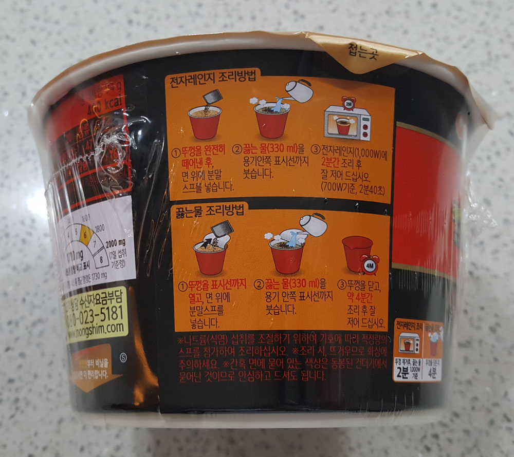 ▲ 농심 신라면 블랙 사발 두부김치 전자레인지 조리방법, 끓는물 조리방법 참고