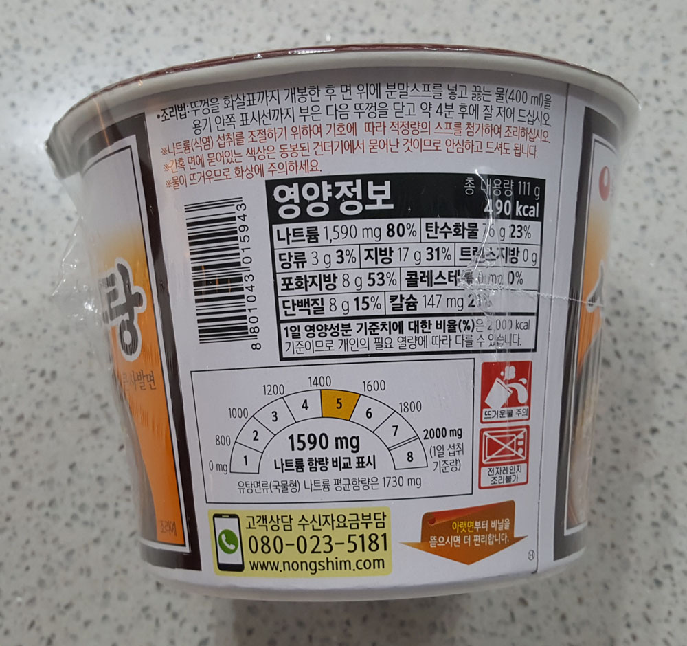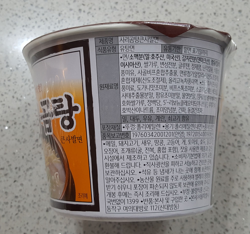 농심 사리곰탕 큰사발면 (컵라면) 중량, 가격, 유통기한, 사리곰탕 큰사발면 원재료 및 영양정보