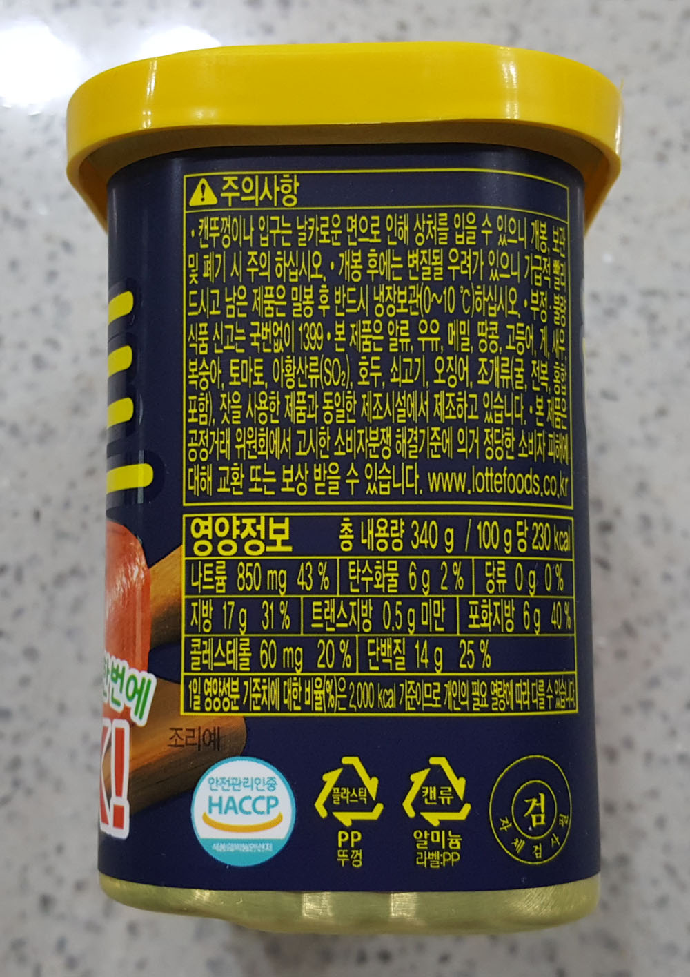 롯데푸드 (롯데햄) 런천미트 중량, 가격, 원재료, 영양정보, 품목보고번호, 롯데햄 런천미트 유통기한 外 정보