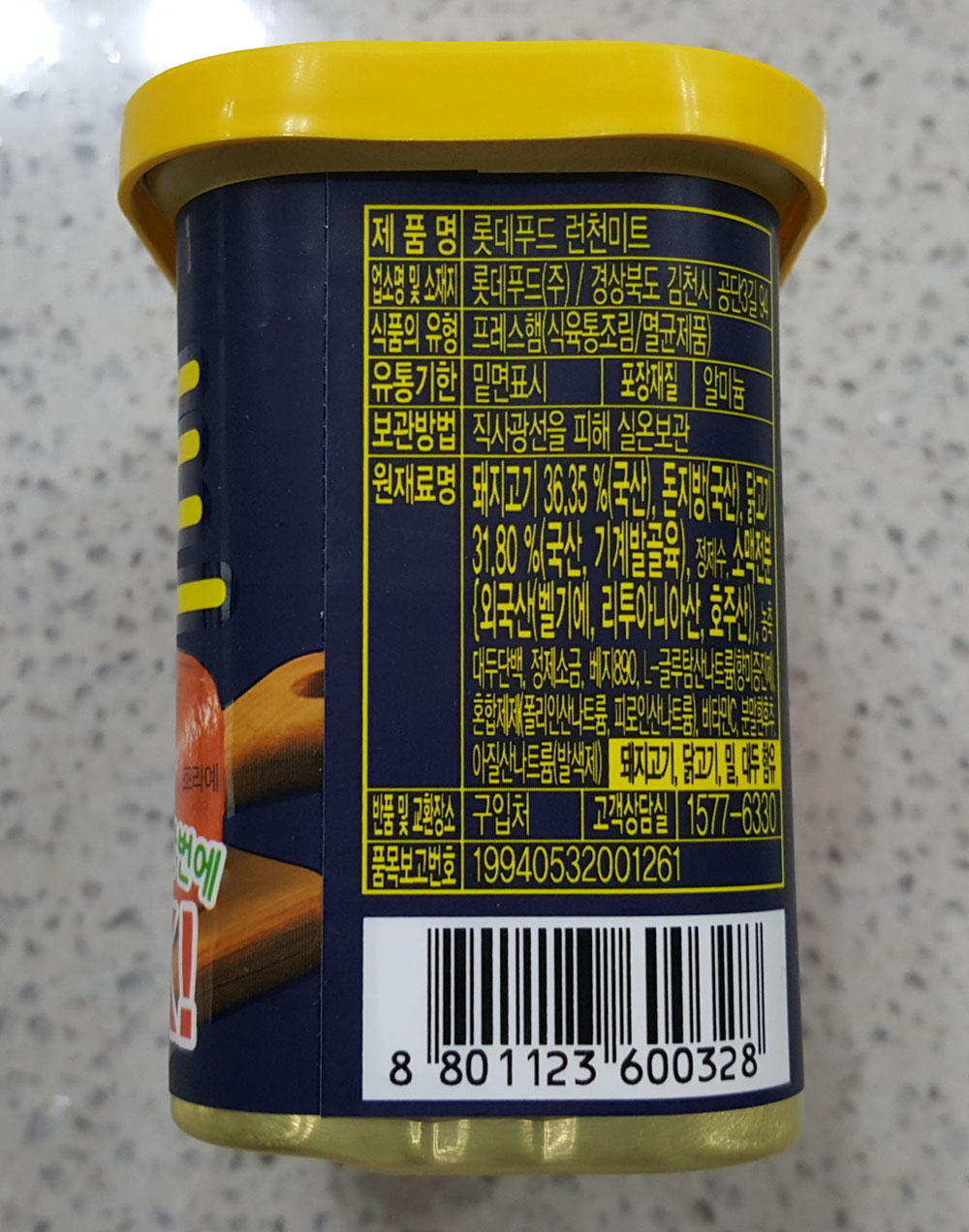 롯데푸드 (롯데햄) 런천미트 중량, 가격, 원재료, 영양정보, 품목보고번호, 롯데햄 런천미트 유통기한 外 정보