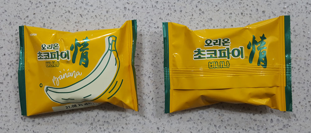 오리온 초코파이 정 바나나는 원조 오리온 초코파이 정보다 식감이나 맛 등에서 부족함이 느껴지는 제품입니다.