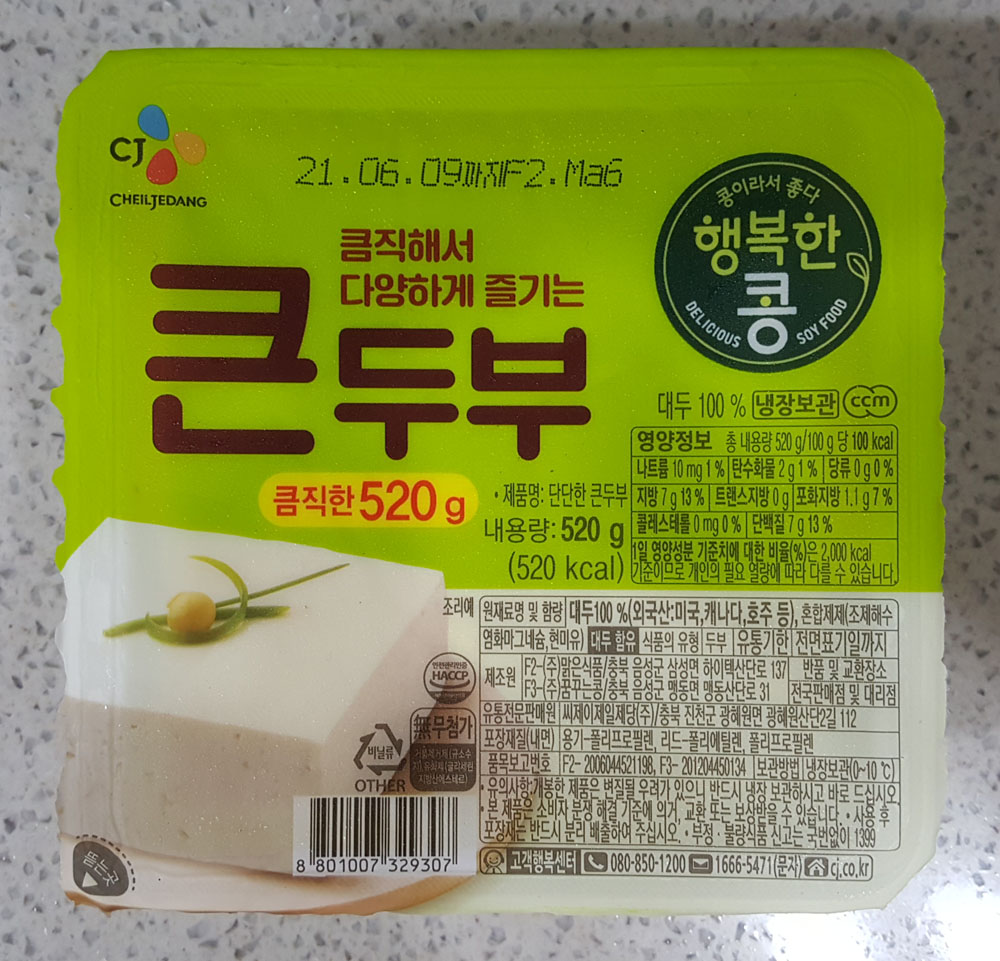 CJ제일제당 단단한 큰두부 내용량, 칼로리, 제조원, 원재료 및 영영정보, 포장두부 유통기한