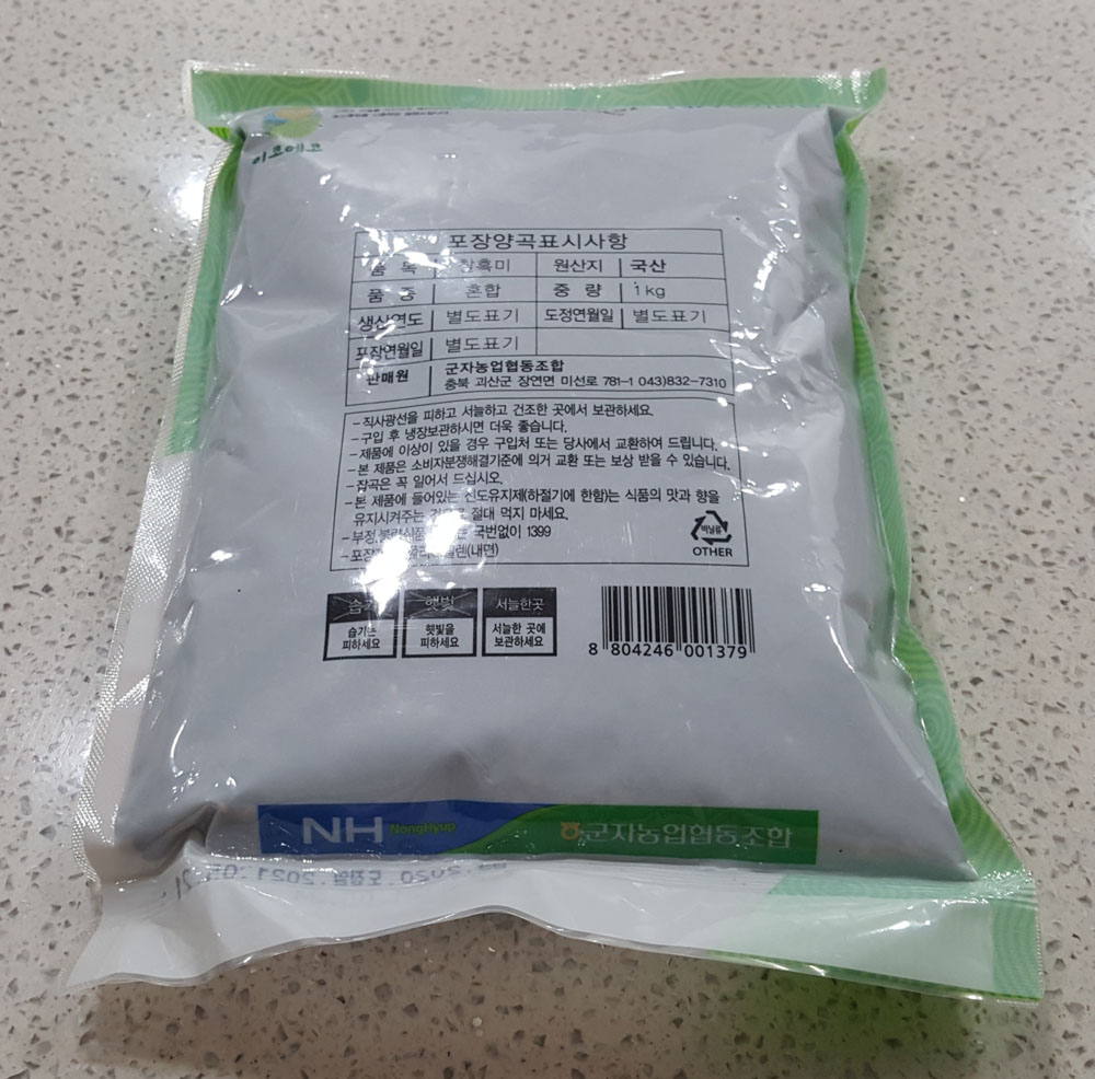 NH 군자농협 찰흑미 1kg은 7,400원 정도에 판매되던 상품인데, 어제 영동농협 하나로마트에서 상품을 구매할 때는 가격 할인을 해서 5,350원에 판매하고 있었습니다.