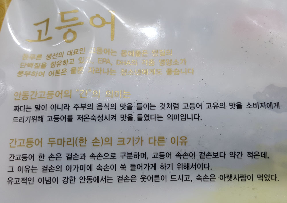 ※ 위에 있는 내용은 안동양반 순살 간고등어 포장지에 인쇄된 내용을 발췌한 것입니다.