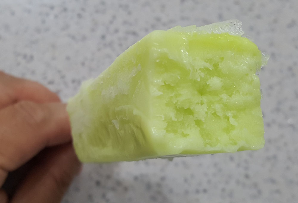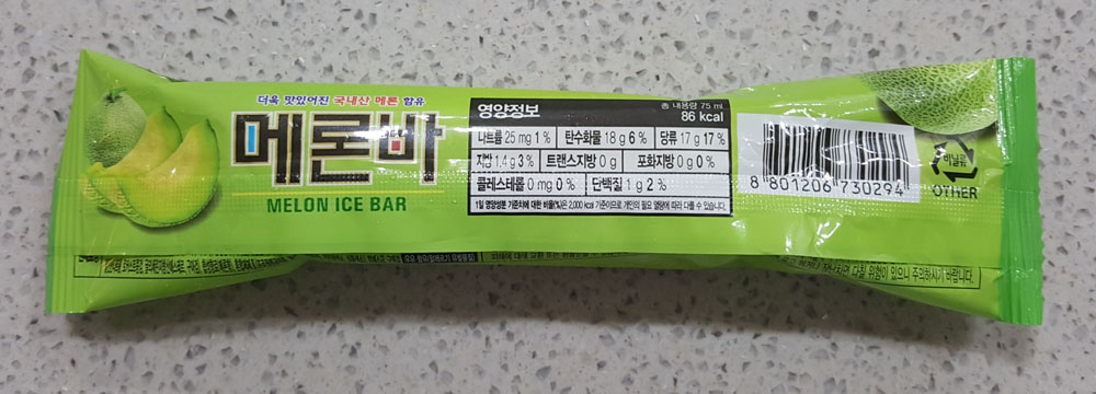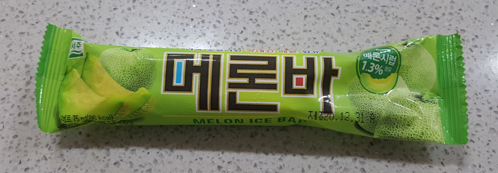 빙그레 메로나를 닮은 서주 메론바는 내부에 얼음(알갱이)이 느껴지는 멜론맛 막대 아이스크림으로