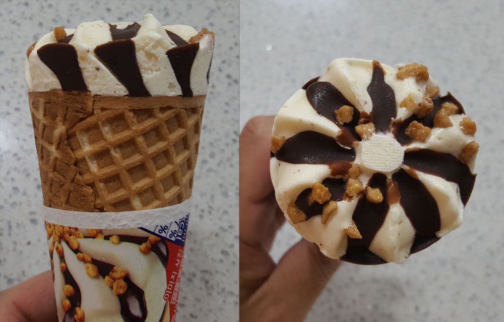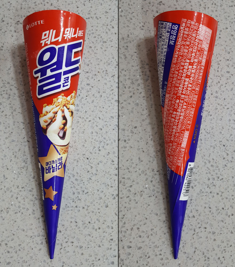 - 콘컵의 경우 보관상의 문제로 조금 눅눅해져 그런 것일 수도 있는데, 조금 더 정확한 것을 알려면 월드콘을 더 사먹어 봐야 할 것입니다.