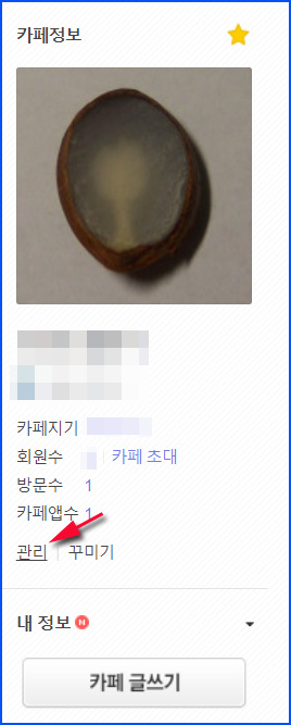 2. cafe 관리하기 화면이 나타나면