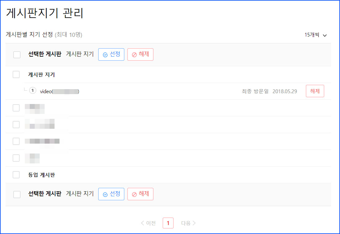 ※ 게시판별 지기는 최대 10명까지 선정할 수 있습니다.