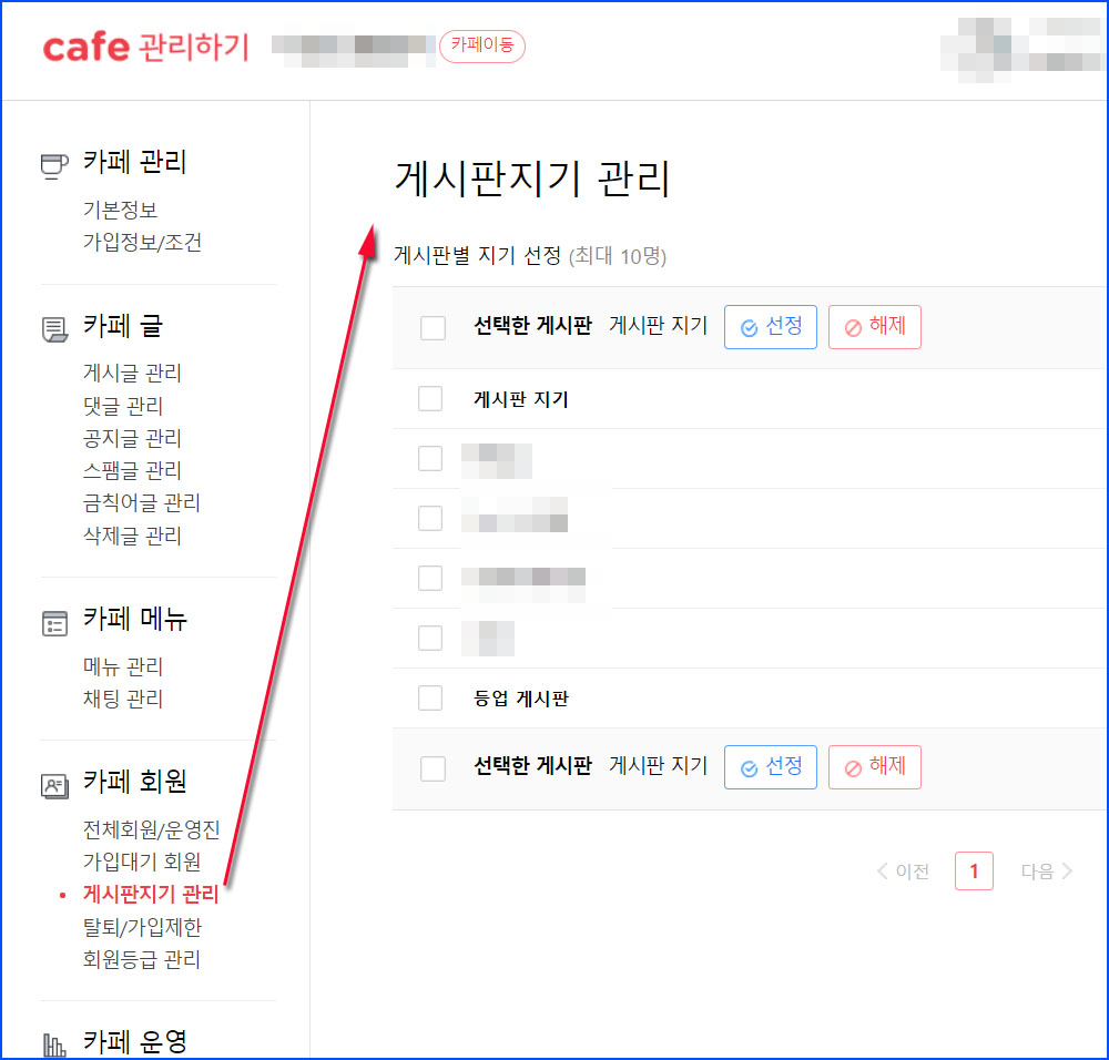 다음 카페 게시판지기 선정 및 해제 방법