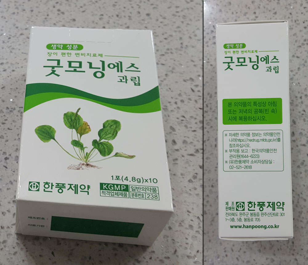 한풍제약 굿모닝에스 과립은 어머니께서 며칠 동안 변을 보지 않으셔서