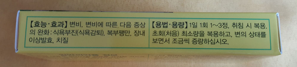 5) 장기간 계속 사용 시 약물에 대한 내성이 증가하고 변비가 악화될 수 있으므로 1주일 이상 계속 사용해서는 안 됩니다. (만약 매일 변비약이 필요한 상태라면 변비의 원인을 조사해야 합니다.)