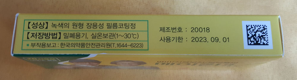 - 첨가제(타르색소) : 황색203호, 황색4호, 황색5호, 청색1호