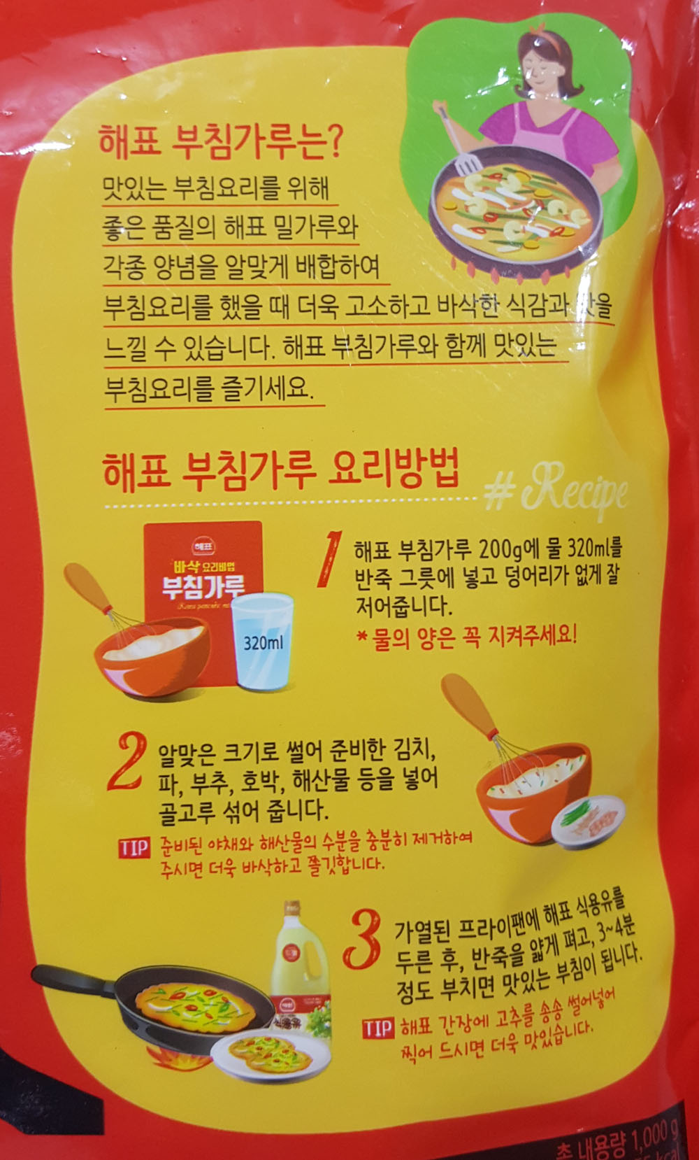 해표 부침가루 1kg 가격, 제조원, 부침가루 원재료, 영양정보, 해표 부침가루 유통기한 外