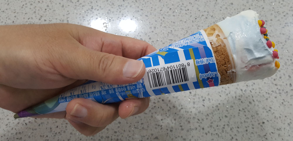 빙그레 요맘때 슈팅스타는 제품 설명에 있는 것처럼 유산균이 함유된 얼린 요구르트(FROZEN YOGURT)에 가까운 콘 아이스크림으로, (조금 녹은 상태에서 먹었기 때문인지) 다른 콘 아이스크림에 비해 식감과 맛이 부족하게 느껴지는 아이스크림이었습니다.
