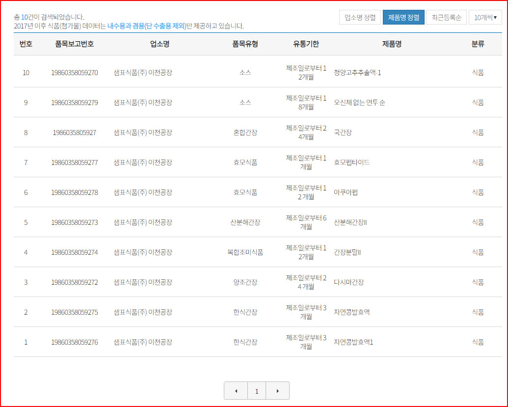 <샘표 국간장, 다시마간장, 간장분말 등 품목보고번호 및 유통기한>