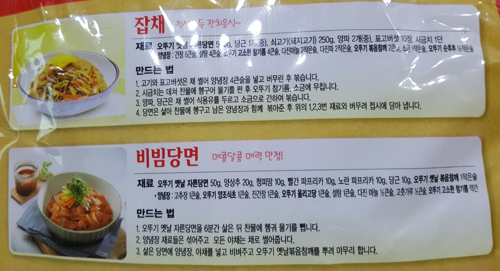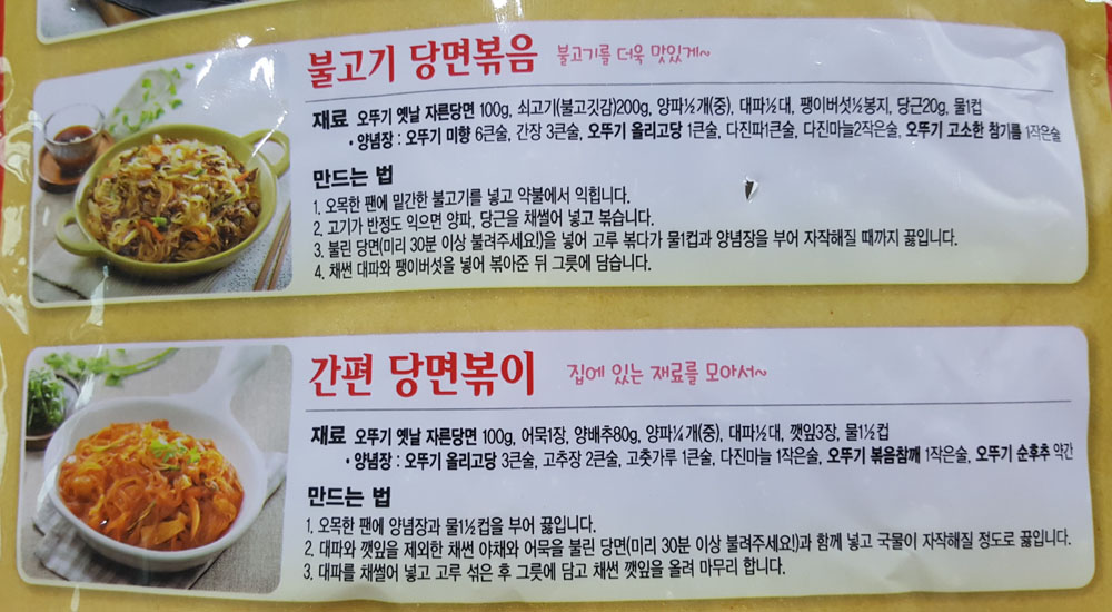 - 잡채, 비빔당면, 불고기 당면볶음, 간편 당면볶이 레시피는 인쇄된 내용을 참고하면 됩니다.