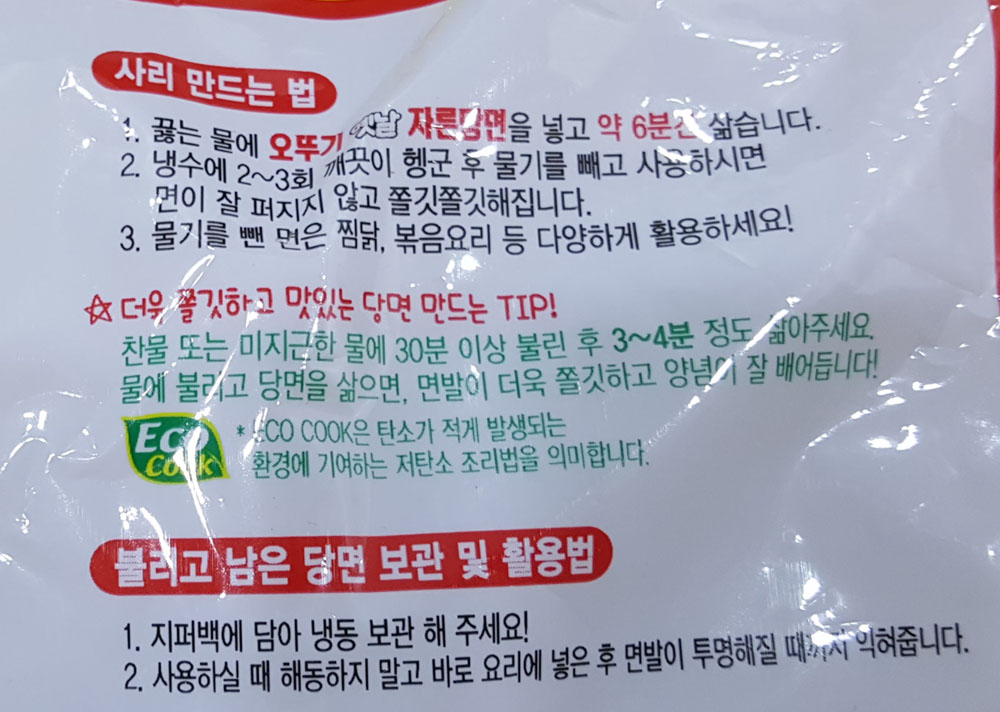 ▼ '오뚜기 옛날 자른 당면 사리 만드는 방법'은 제품 포장에 인쇄된 내용을 참고하면 됩니다.