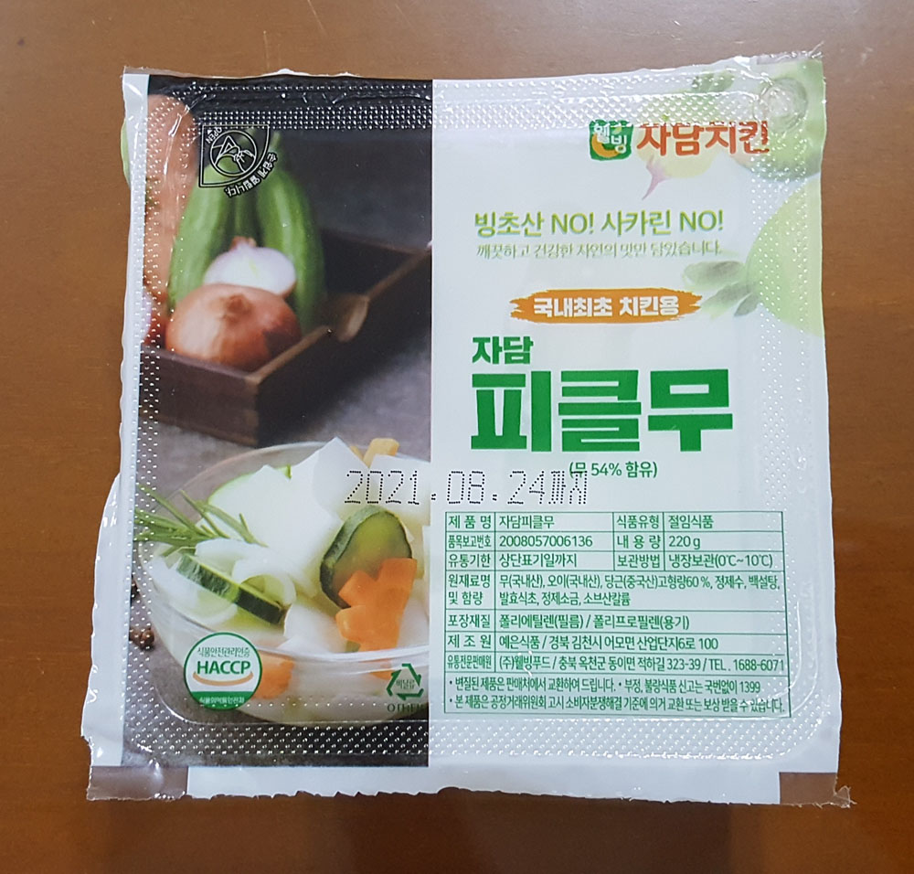 함께 포장되어 나오는 치킨무 자담 피클무에 관한 정보입니다.
