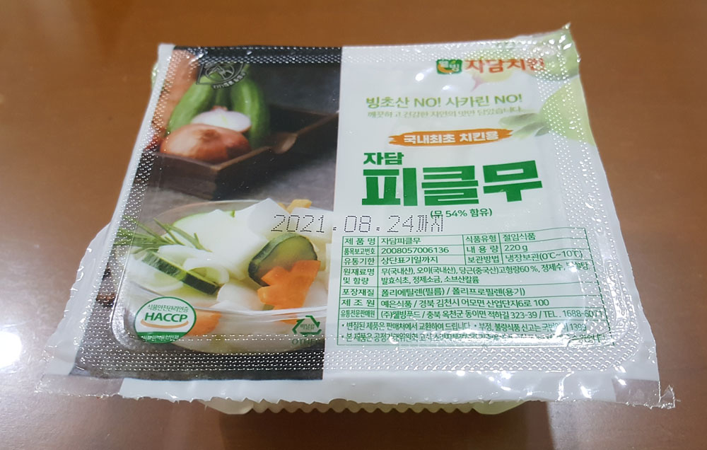 자담 피클무 내용량, 품목보고번호, 원재료 및 제조원, 치킨무 유통기한