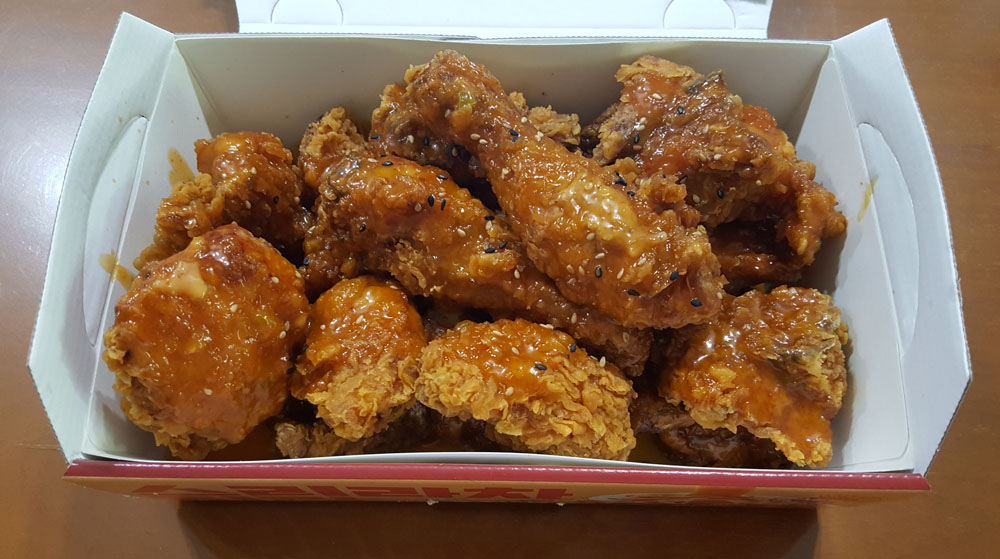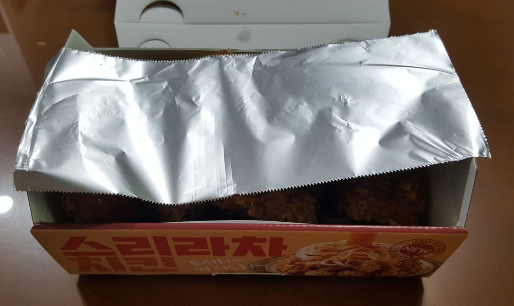 영동으로 이사 온 후 자담치킨의 스리라차치킨을 3번 시켜서 먹었습니다.