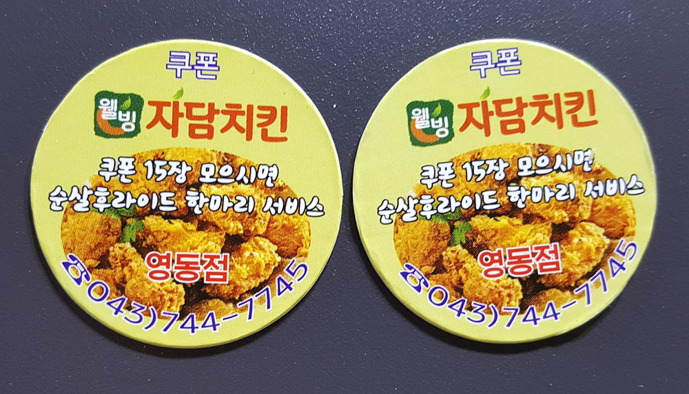 그리고 15장을 모으면 순살후라이드 한마리를 서비스 받을 수 있는 쿠폰 하나가