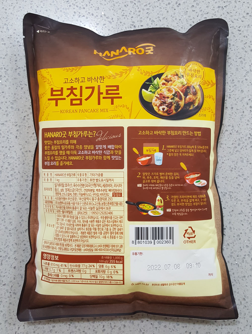 HANARO굿 부침가루 내용량(1kg), 가격, 원재료 및 영양정보, 품목보고번호, 부침가루 유통기한 外