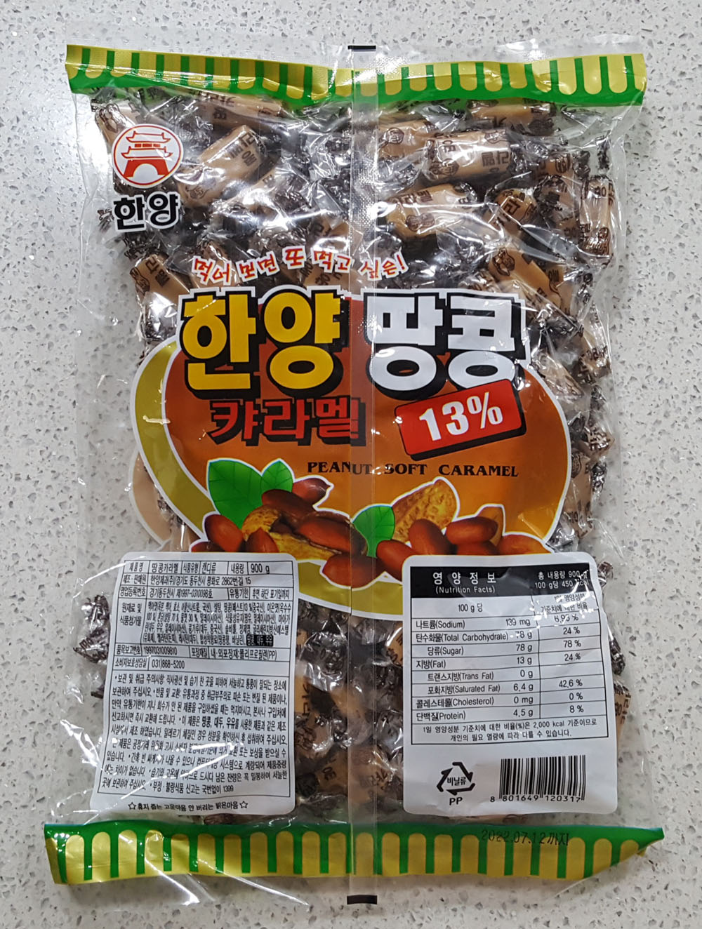 한양 땅콩 캬라멜 내용량, 가격, 제조원, 품목보고번호, 땅콩 카라멜 유통기한, 캐러멜 원재료 및 영양정보