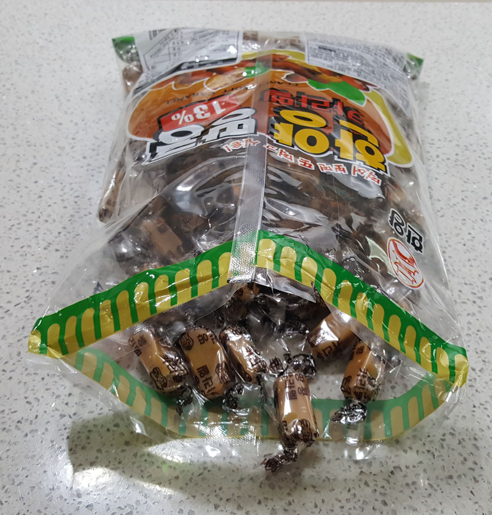 이온엿 (옥수수 100%), 혼당 (설탕 70%, 물엿 30%, 말레이시아산), 식물성유지 (팜유, 말레이시아산)