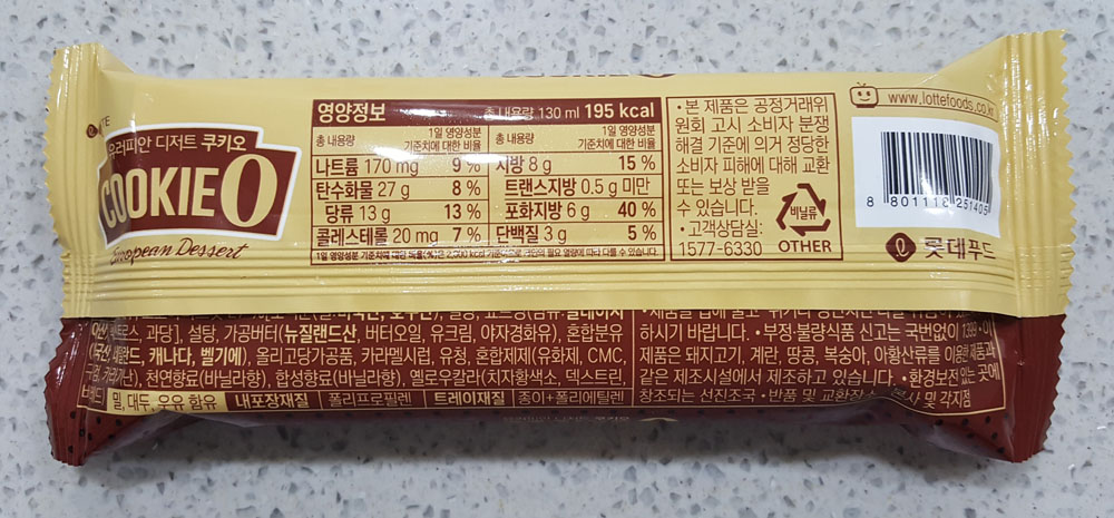 빵류 아이스크림 롯데푸드 유러피안 디저트 쿠키오 제조원, 제조일, 품목보고번호, 쿠키오 원재료 및 영양정보