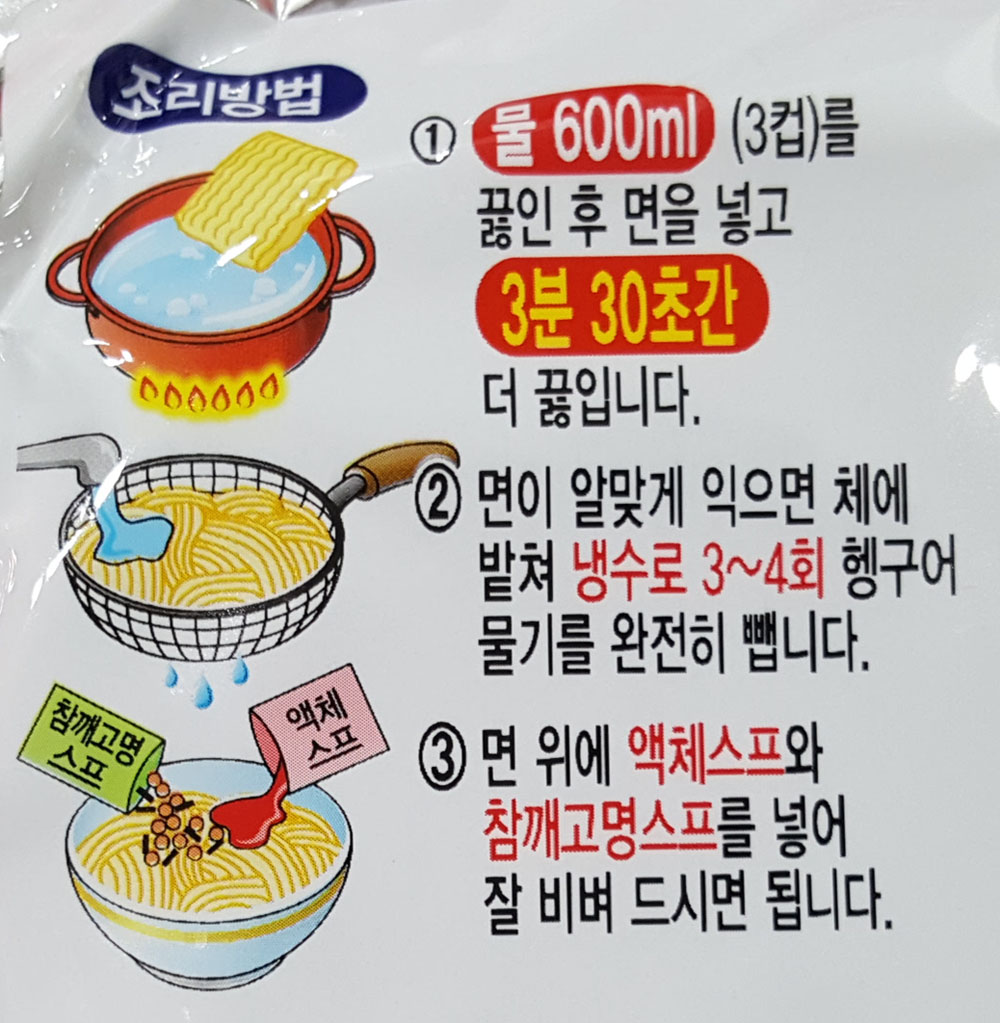 오뚜기 진비빔면 조리방법은 라면 봉지에 인쇄된 내용을 참고하면 됩니다.