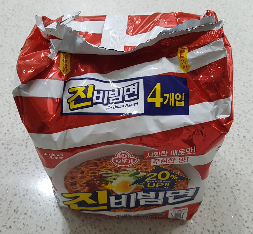 아래에 있는 것은 양이 20% 늘어난 오뚜기 진비빔면에 관한 내용으로, 제품 포장에 인쇄된 내용을 옮겨왔습니다.