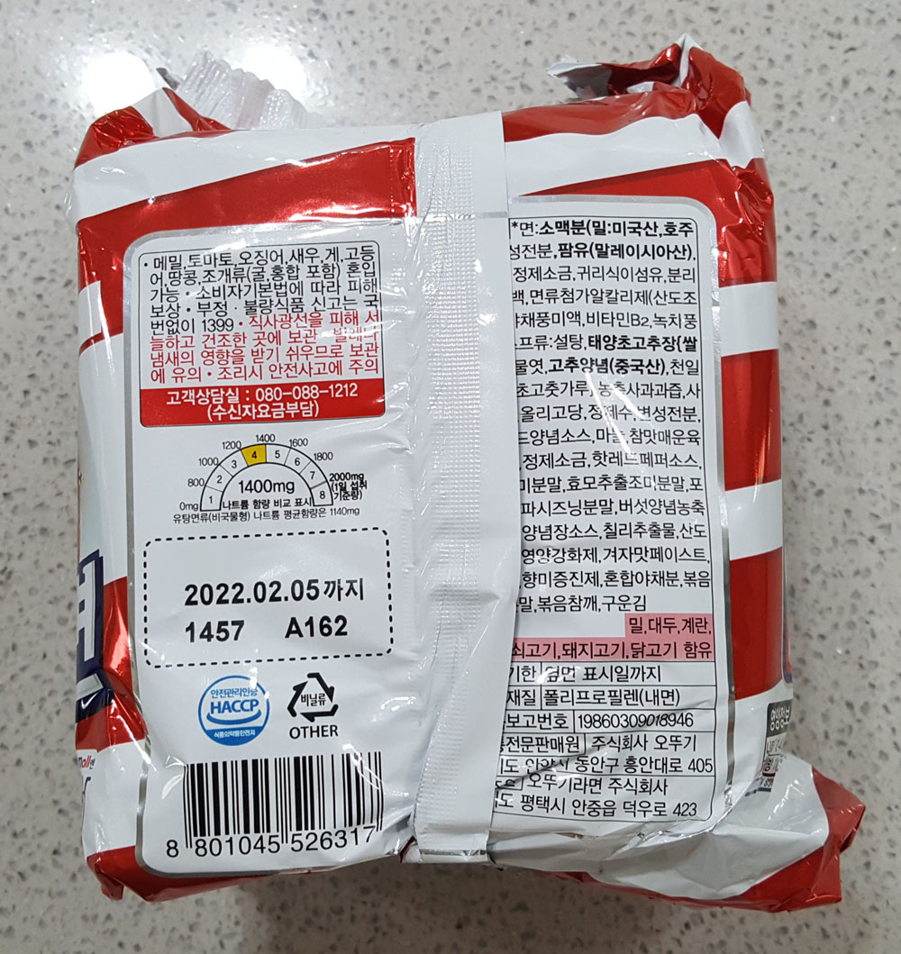 제조원 : 오뚜기라면 주식회사 / 경기도 평택시 안중읍 덕우로 405